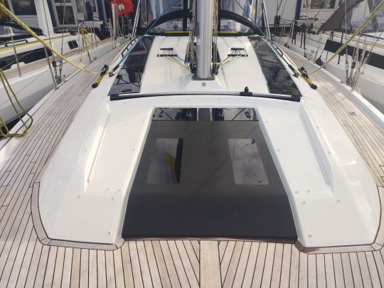This size translates into a chine silhouette and full bow shapes. On board, the effect is most noticeable at the front, with the owner's cabin boasting a volume that, a few years ago, was more common on longer units.