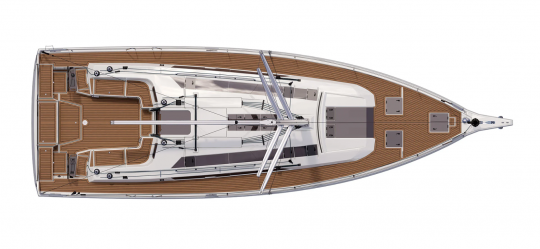 In terms of appendages, Dufour remains with a single rudder. The manufacturer emphasizes maneuverability in port, as engine thrust has a direct impact on the scoop. From a practical standpoint, a wider passageway and a step make it easier to move between helm stations and side decks, at the cost of less direct access to certain sheeting winches from the helm, which can be important when sailing with a small crew.