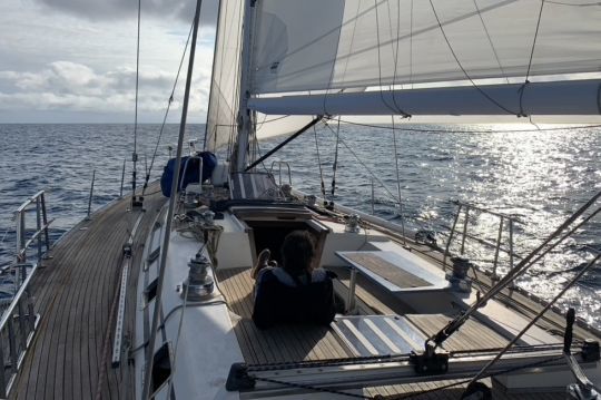 Tayya's first life was spent as a school sailboat. She then passed into the hands of a Sardinian owner who did little sailing, leaving the boat in generally sound condition. In 2020, at the end of the COVID period, two friends bought Nauta 54 and repatriated her to Douarnenez. The program changed dramatically. The boat set off for the Atlantic, heading for the Canaries and then the Azores. These cruises highlighted the boat's balance under sail and its ability to maintain a steady, high average speed while cruising, without overtaxing the crew.