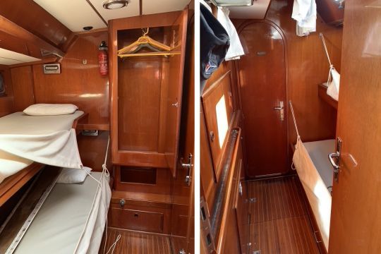 The leather upholstery and mattresses were renewed in 2021. The well-separated navigation station features modernized electronics with B&G and Raymarine equipment, and a VHF AIS installed in 2022. Two plotters, one at the helm and a second for the crew, ensure safe navigation.