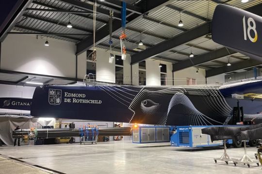 The Maxi Gitana 18 has left her hangar to join her element. Behind this launch lies a tight schedule, a number of architectural choices and a major sporting challenge, the Route du Rhum 2026.
