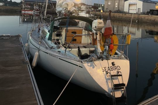 An exchange of e-mails and I'm on the first train to Saint-Malo the next morning. I arrive at La Richardais. There she is, on her mooring, as calm as this arm of the Rance is beautiful. The owner knows his boat like the back of his hand. He's one hell of a sailor, having lined up at the start of the first Route du Rhum on a First 30. That's impressive.