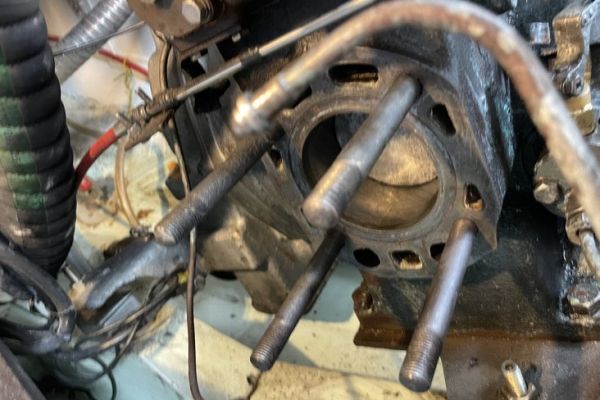 I start reassembling, step by step. Late, too late. Fatigue or age denial prevents me from noticing the incorrect setting of the torque wrench I'm using to tighten the crankshaft. It must be 10 or 11 pm. Under the strain of tightening, the second stud has just given way. I feel dizzy. So close, I'm going to fail. In all humility, I practice the Moitessier mental cape. No need to think, no need to act. Just wait for the squall to pass.
