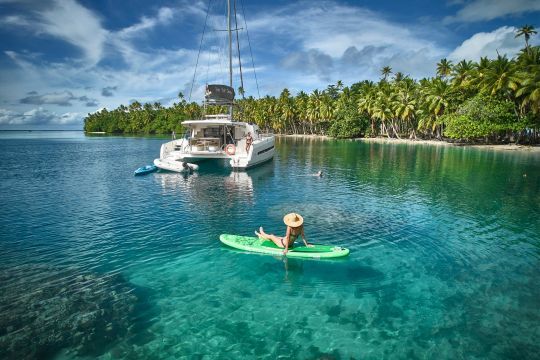Chartering a large catamaran with a full crew, skipper and hostess is often very expensive. Easy Crewed offers a rate base focused on essential services. The hostess/cook remains an option. She can provide breakfasts and simple lunches on board. This choice makes it possible to adjust the budget and the level of service.