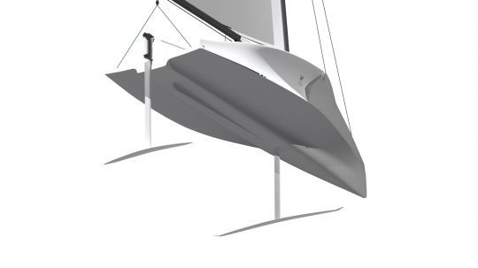 The boat targets sailing schools, families and racers looking for a stable low-speed platform. The reduced wetted surface before take-off contributes to the transition to flight. The cockpit incorporates curved sides to optimize efficiency when abseiling. A simple system for raising the foils at each end facilitates maneuvering when approaching the shore.