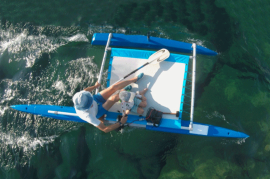 ECOPULSE is available in two versions, trimaran and prao. Both share a length of 520 cm and a draught of 50 cm, compatible with shallow waters.