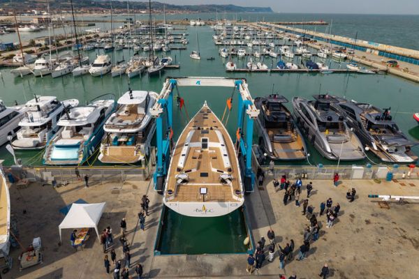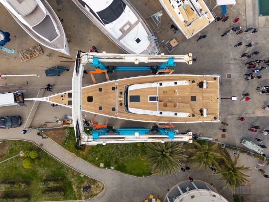 The presence of two crew cabins aft, with direct access from the cockpit, confirms this positioning. This yacht is designed to be operated with sailors on board, although private use remains possible. The Cantiere del Pardo shipyard has announced that it will be built entirely in-house, from stratification to launch. This ensures seamless project management.