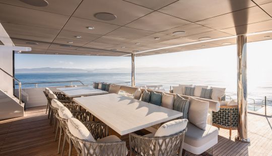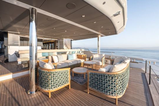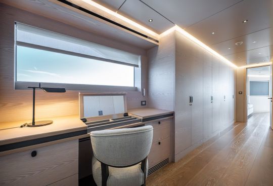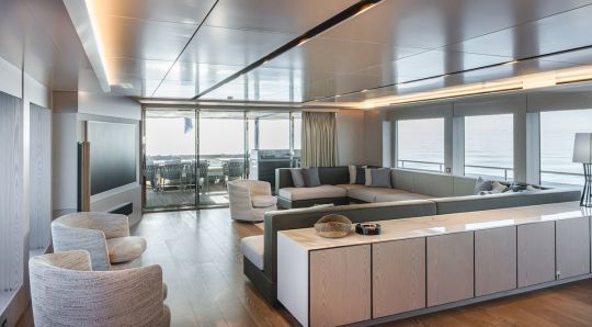 This type of layout can be used for a variety of purposes, from family cruising to on-board telecommuting or entertaining guests. And the separation of flows between crew and guests enhances discretion on board.
