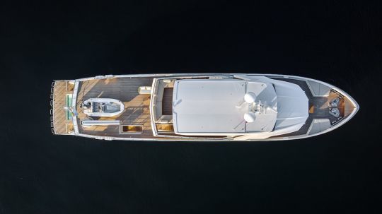 The 40MXP carries a dinghy of almost 10 meters, complemented by a secondary dinghy, two jet skis, seabobs and kayaks. A 3-tonne deck crane is used for handling.