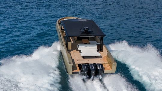 The Forte 47 GT reaches 47 knots with three 600 hp Mercury Verado V12s. This configuration delivers dynamic behavior, with crisp acceleration and good responsiveness at the helm.