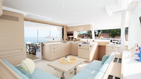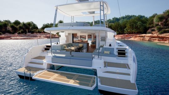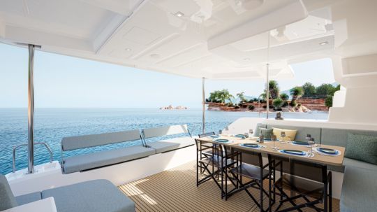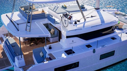 The Lagoon 47 is built around three distinct exterior areas that complement each other. The 16 m2 aft cockpit remains the center of operations, with space for a family crew or charter group. Skirt accesses facilitate movement at anchor.